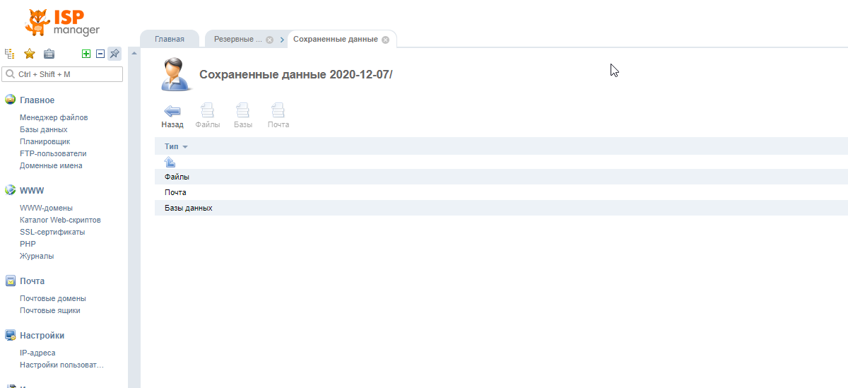 4. Выберите дату резервной копий, которую хотите восстановить, далее выберите пункт Данные.