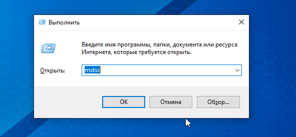 2) В появившемся окне вводим mstsc (клиент служб терминалов Windows). Нажимаем OK
